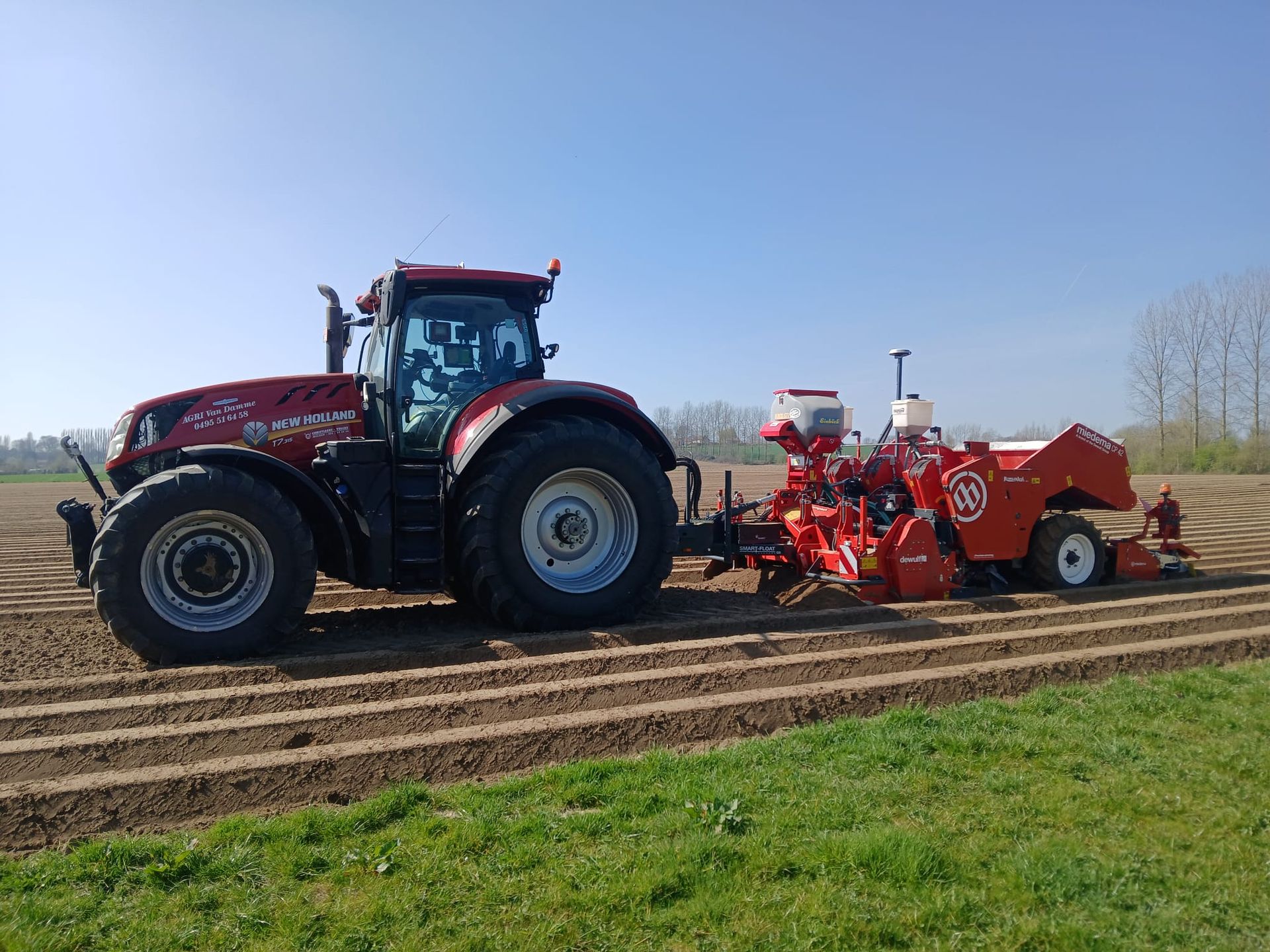 U kan bij ons terecht voor het planten en rooien van aardappelen. Voor het planten zijn we uitgerust met vijf Dewulf pootmachines waarvan drie met frees en twee zonder frees. Alle machines zijn voorzien van een drempelsysteem, sectieafsluiting via GPS, aanleg van rijpaden en het toedienen van granulaat. Het rooien gebeurt met drie Dewulf Enduro 4-rijen en een Dewulf R3060 2-rij. Voor het laden van vrachtwagens maken wij gebruik van een hooglosser Dezeure Trans D20 die voorzien is van tractie. Daarnaast zijn wij in het bezit van een mobiele reinigingsinstallatie Grimme Cleanloader. Deze heeft een loscapaciteit van 100 ton per uur. De Dewulf R3060 kan ook ingezet worden voor het oprapen van uien.