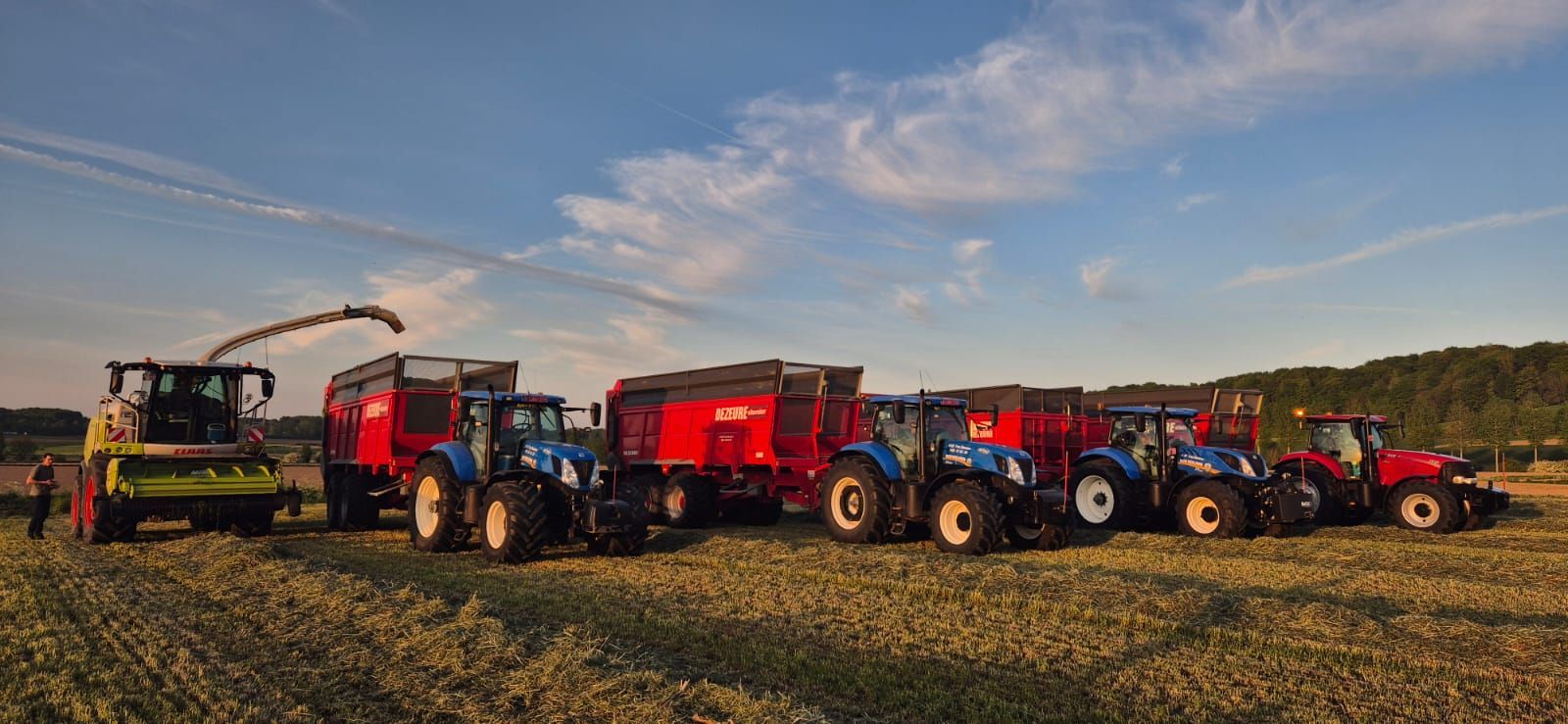U kan bij ons terecht voor het hakselen van maïs, MKS en GPS. Als ook voor het dorsen en zaaien van maïs. Het hakselen gebeurd met twee Claas Jaguars voorzien van 8-rij bek en 10-rij bek met grote zonnen. Het dorsen gebeurd met twee New Holland dorsers met 8-rij kolvenplukker. 1 machine is uitgerust met rupsen voor natte percelen. Beide dorsers zijn voorzien voor het aanmaken van opbrengstkaarten. Zaaien doen we met een Kuhn 7-rij en een Kuhn 8-rij. Beide machines zijn voorzien van rijenbemesting, bij de 8-rij gebeurt dit via fronttank voor een betere gewichtsverdeling. Verder zijn ze ook voorzien van automatische sectieafsluiting en GPS besturing. Indien gewenst kan er met de 8-rij ook granulaat toegediend worden. Ook voor het schoffelen van maïs kan u beroep doen op ons, eventueel in combinatie met het onderzaaien van gras/groenbedekkers. Voor het aanrijden van de kuil zijn we voorzien van JCB bull met duwblad en dubbel luchtwielen of met een tractor voorzien van duwblad en aandrukrol.